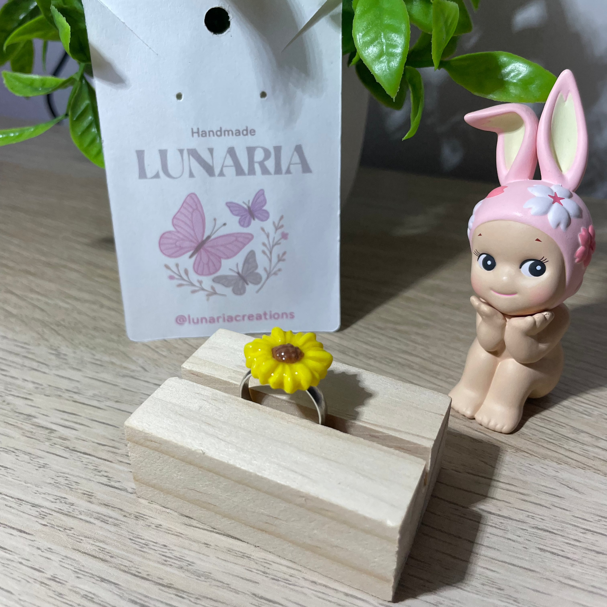 Cette bague tournesol est fait à la main en pâte polymère , avec une touche de résine pour plus de brillance et de durabilité. Un design à la fois joyeux et subtil, parfait pour emporter un rayon de soleil partout avec vous.